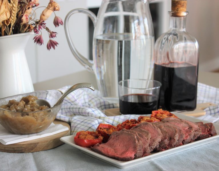 Magret de pato a la plancha, puré de zanahoria y salsa PX